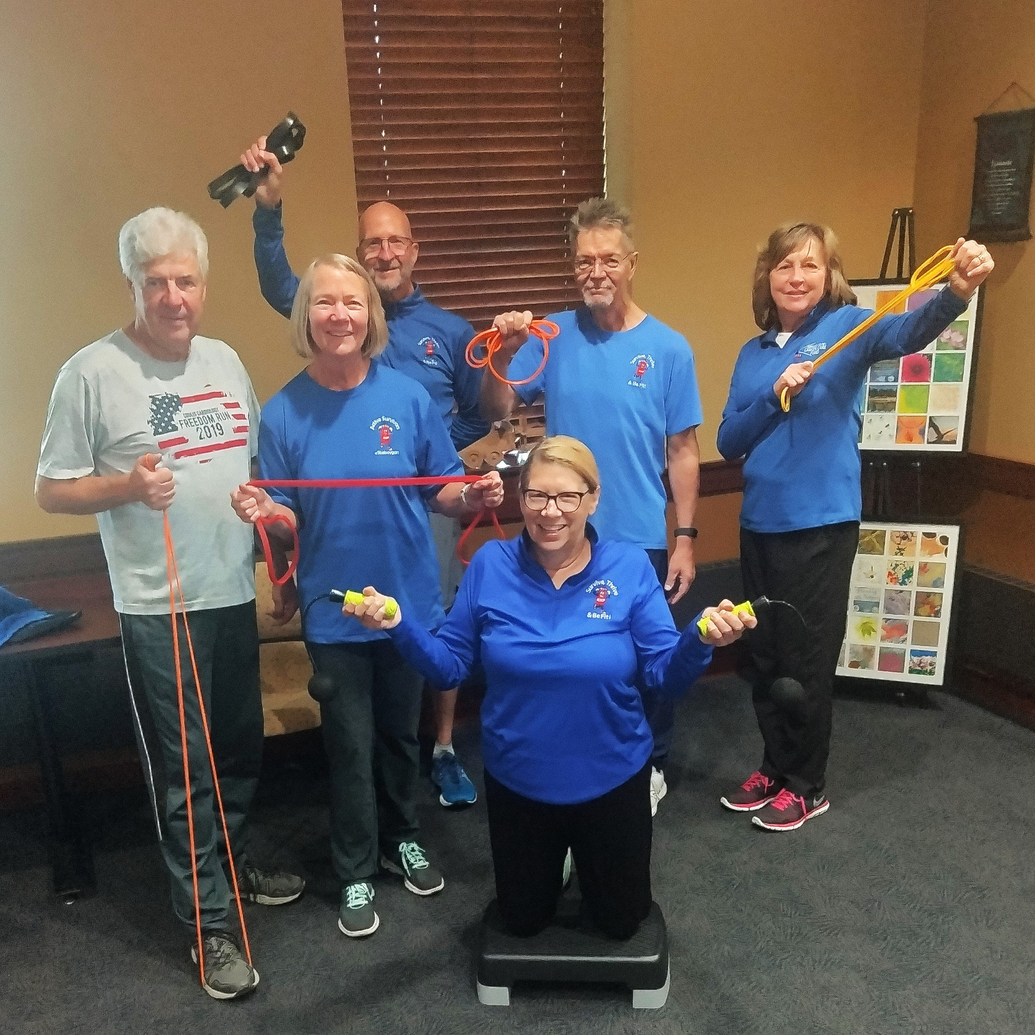 Survivor athletes (L to R) Diane L, Kathy B, Sue Z, and Barb B at the completion of our most recent Energizing Flex & Flow class during which we introduced a few new props! This simple (anyone can do it) but powerful (evidence-based) exercise class incorporates resistance bands, light weights, steps, and "ropeless jump ropes" that all can be modified for beginners and long-time fitness enthusiasts! I hope you'll join us!