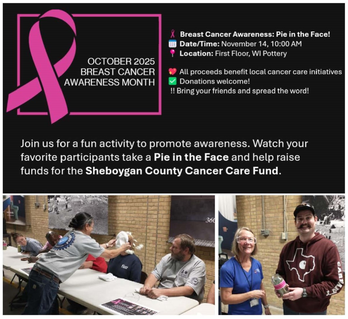 The fun folks at Kohler WI Pottery organized a unique way to promote awareness and raise $926 for SCCCF! Thank you to all who participated, donated, and took a "Pie in the Face" for SCCCF!